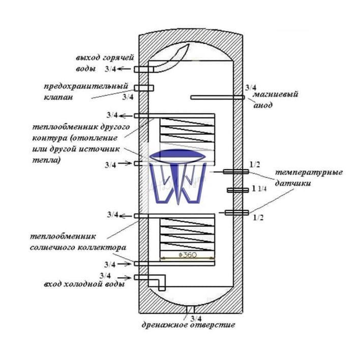 Бойлер косвенного нагрева с двумя теплообменниками.
